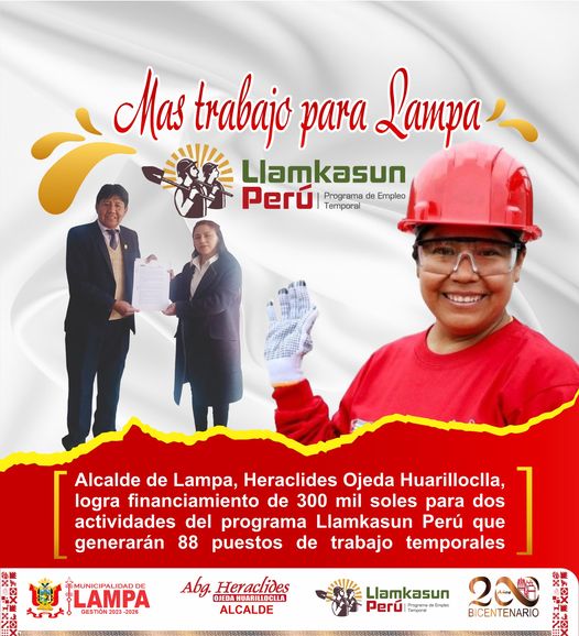ALCALDE DE LAMPA LOGRA FINANCIAMIENTO PARA LA EJECUCIÓN DE DOS ACTIVIDADES DEL PROGRAMA LLAMKASUN PERÚ